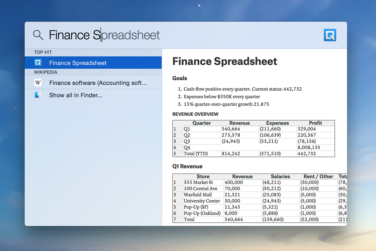 On the Mac version of the app, all your Quip documents show up in Spotlight Search. When you're searching your computer, all your team's collaborative documents will show up side-by-side with your personal files. It's a really cool experience — when you sign into Quip Desktop, all your team's knowledge is indexed and instantly searchable on your computer.