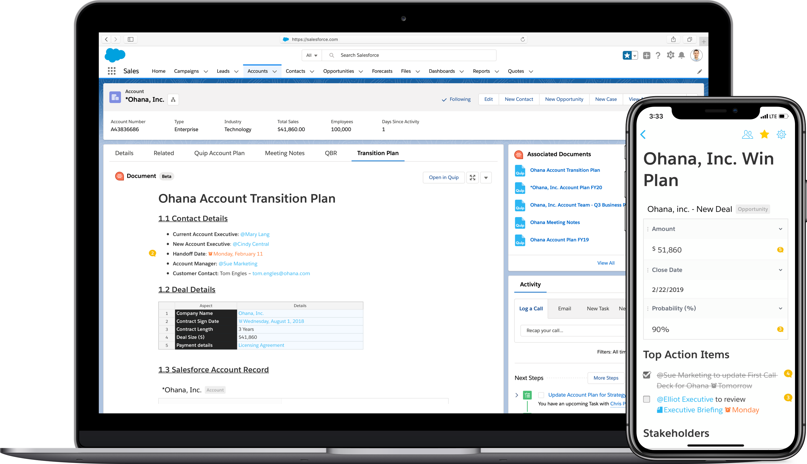 You can easily build your own library of customizable best practice template documents and connect them to any Salesforce record. Quip for Sales will help your sales team with deal, account and team management: