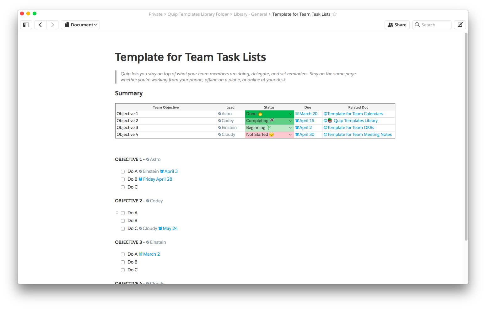 Well, never underestimate the power of a friendly checklist—especially one with @mentions of all the documents and co-workers a newbie needs to know. Give your hires clarity and confidence so they can cut through all the disorienting stuff and get straight to the work that matters.